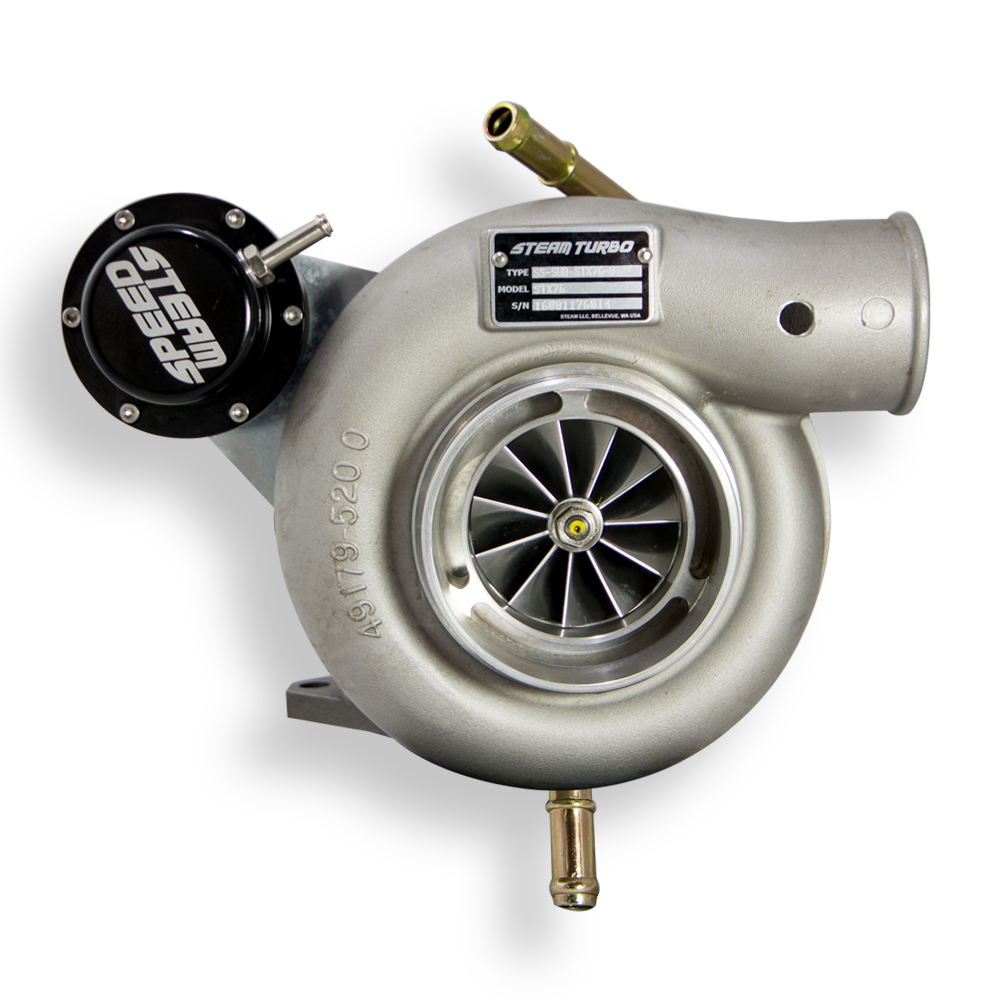 SteamSpeed understands that picking the right turbo for your car is critical to achieving your goals for responsiveness and power. The STX 76 is a 70 lbs/min turbo based off of the Garrett GTX3076R compressor specs in a stock-location bolt-on package. Combined with a 9-blade TD06SL2 turbine, the STX is the perfect turbo for those looking fast-spooling response while still being capable of making 475-525 whp with supporting mods.